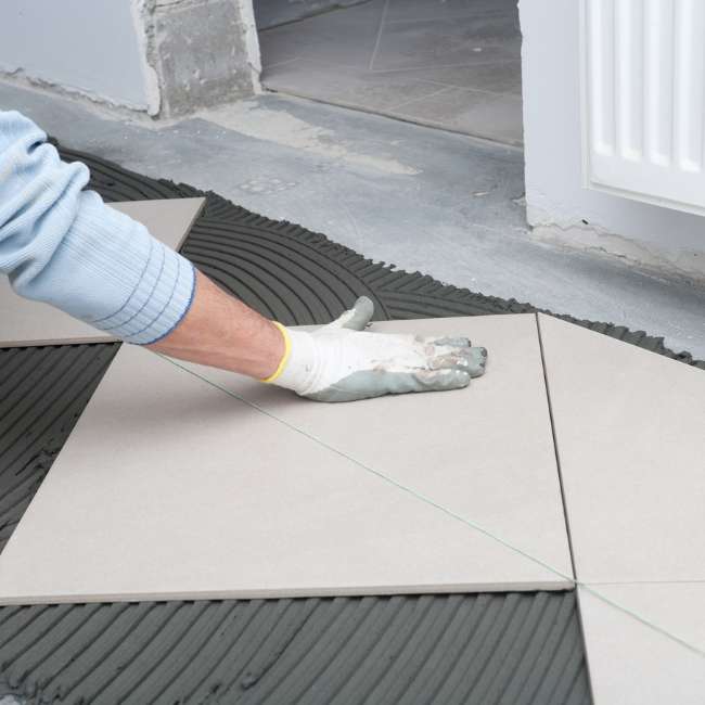 • Scelta dell’adesivo: Il collante deve essere compatibile con il materiale (pietra naturale, gres, parquet) e con l’ambiente (resistenza all’umidità o al gelo).